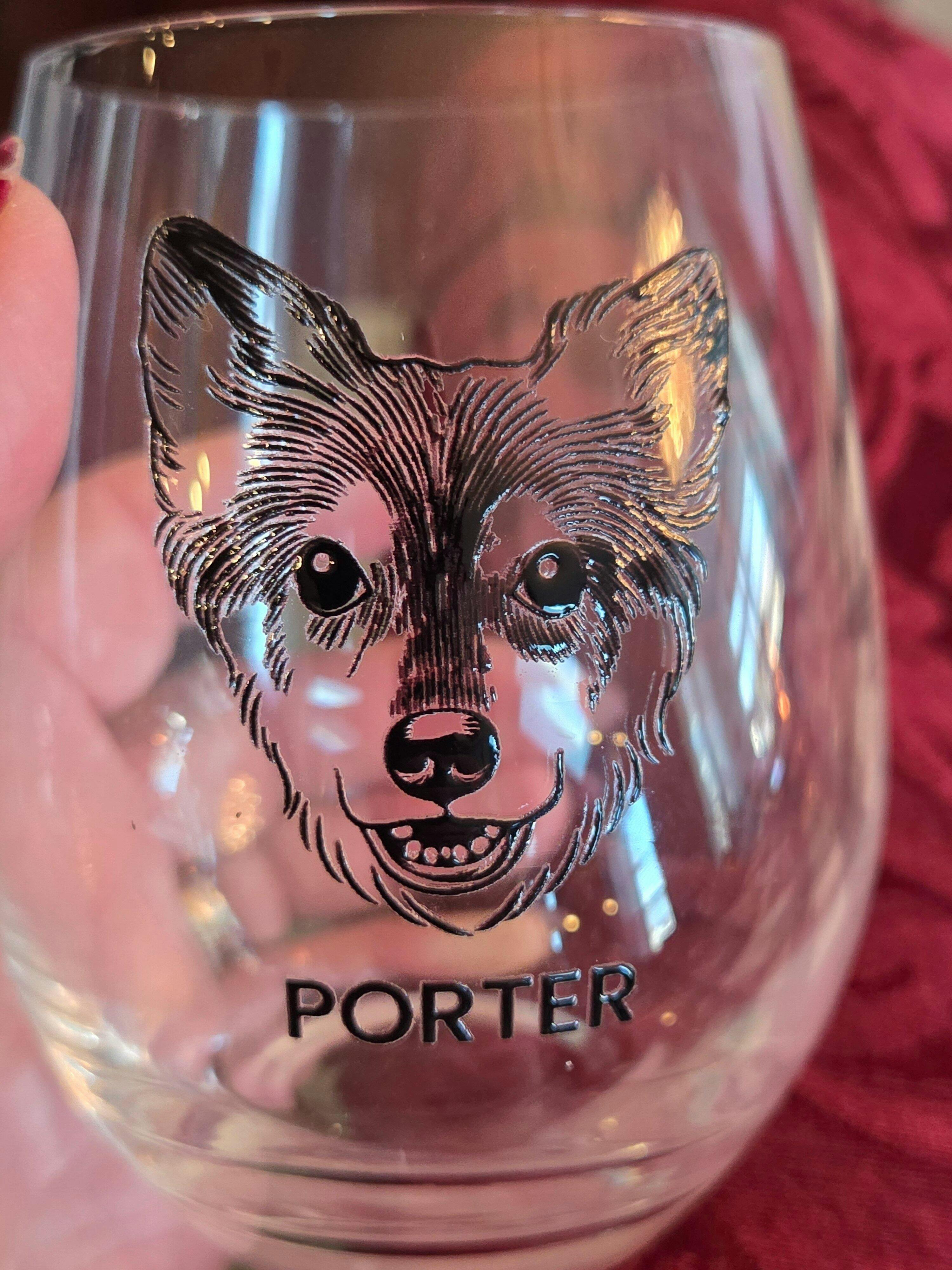 Show off your fur baby's adorable face with this custom pet portrait stemless wine glass! Wine glasses are 15oz and universal red/white.